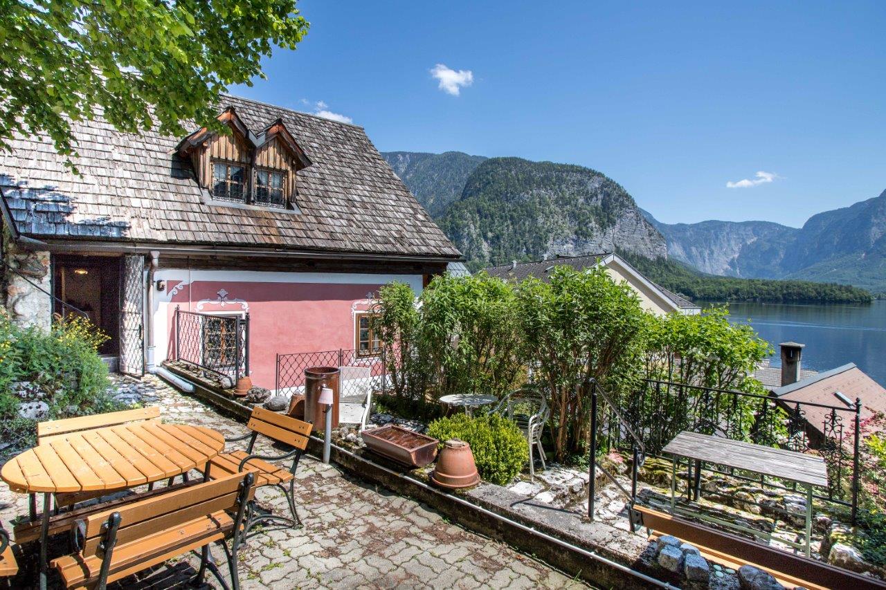 Die großzügigie Terrasse lädt zum Verweilen ein, verträumt mit wunderschönem Blick über den Hallstättersee. Hier können Sie Ihren Morgenkaffee genießen.